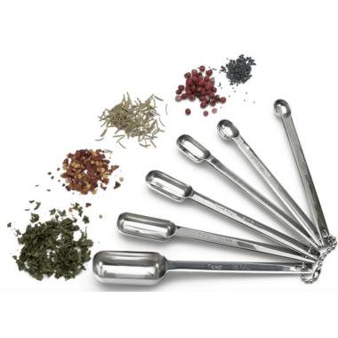 These spoons make it easy to measure spices and herbs from spice cans and Made from 18/8 stainless steel with long 4-1/4″ handles and narrow measuring spoons.