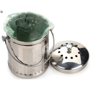 For convenient, trouble-free, odor-free recycling of kitchen scraps use our durable, 1/2-gallon capacity, 18/8 stainless steel compost pail. The fluted polished pail has a sturdy bail handle and includes two charcoal filters in the vented lid to ensure an odor-free environment.