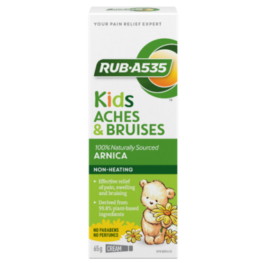 Rub-A535 Kids Aches & Bruises Cream offers soothing pain relief for everyday aches, sore muscles, bumps & bruises. Kid-friendly, made with 100% naturally sourced Arnica and no harsh additives. Simply rub the cream onto skin to soothe soreness and inflammation on contact. Our natural formula is petrolatum, paraben and fragrance free. The topical analgesic is fast and effective, so your child can spend less time in pain and more time being active. Easily apply Rub-A535 whenever pain strikes; it conveniently fits in your bag and is easy to apply on the go.