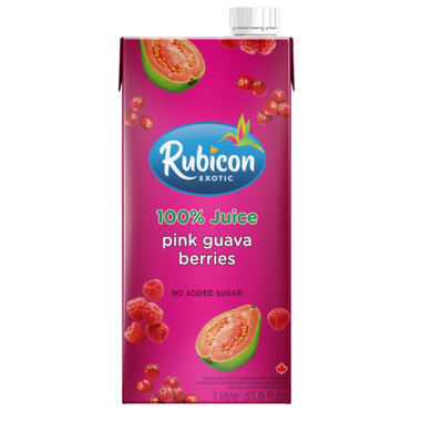 Rubicon Exotic 100% Juice Guava Berries is a blend of apple, cranberry and raspberry juices from concentrate and guava puree with natural flavour and vitamin C.