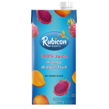 Rubicon Exotic 100% Juice Mango Dragon Fruit is a blend of apple, white grape, lemon juice from concentrate and mango, dragon fruit purees with natural flavour and vitamin C.