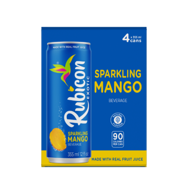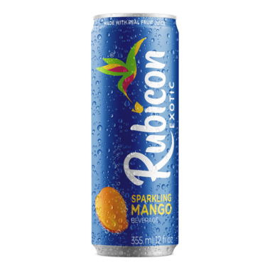 Rubicon Exotic Sparkling Mango Beverage, made with real fruit juice.