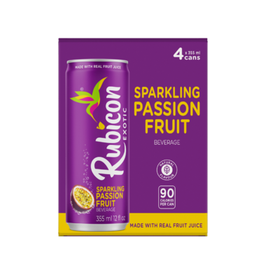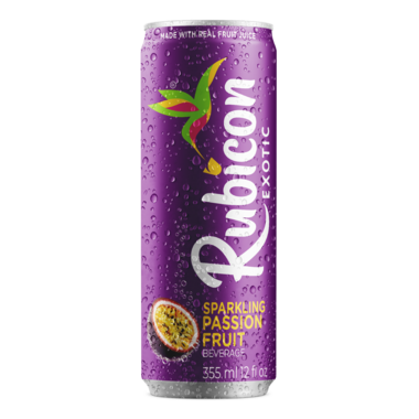 Rubicon Exotic Sparkling Passion Fruit Beverage, made with real fruit juice.