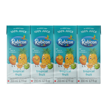 Rubicon Kids Tropical Fruit. Rich in vitamin C. A blend of fruit juices from concentrate and mango puree with natural flavour and vitamin C.