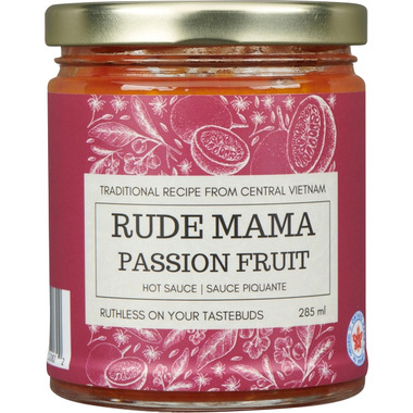 Passion Fruit Rude Mama, the youngest daughter of the family, being dotted since born, full of mischief and surprises, will capture your heart and spice up your culinary adventures like no other. Her vibrant energy and playful nature bring a delightful twist to every dish she graces. Authentic Vietnamese hot sauce, handcrafted in the heart of Toronto, Ontario.