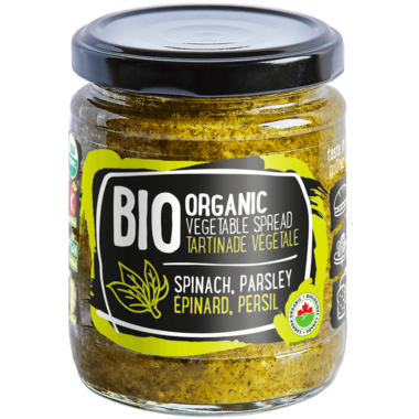 Ingredients: Spinach* 27%, Carrot*, Rapeseed Oil*, Water, Broccoli*, Sesame Seeds*, Sunflower Seeds*, Linseed*, Rice Flour*, Salt, Parsley* 1%, Dill*, Garlic*, Chilli Pepper*. *Organic Ingredients.