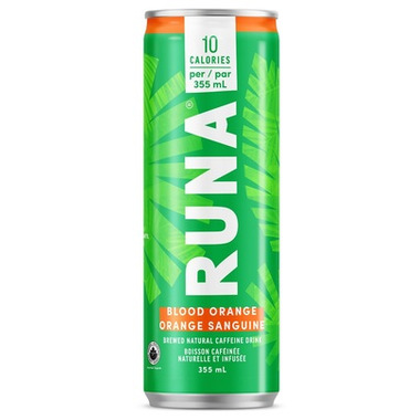 Runa Clean Energy Drink Blood Orange is a brewed natural caffeine drink. Runa's natural caffeine comes from the guyusa (gwhy-you-sa) leaf. This Amazonian superloaf helps deliver sustained focus. It has more caffeine than a double espresso drink.