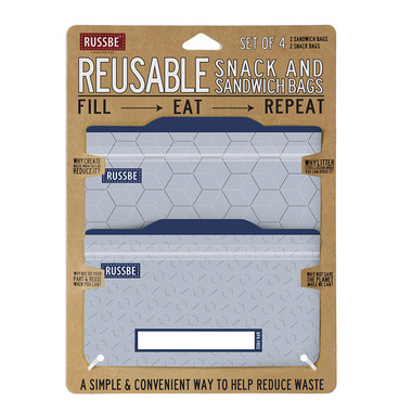 Washable, durable, and completely reusable! Just like all Russbe products, these stylish snack and sandwich bags are resilient and reusable. Along with the trendy, fun prints, these bags are durable with reinforced seams and a locking seal to keep your family's foods fresh. The gusseted, standup design ensures a mess-free snack/meal experience. These eco-friendly bags are completely free of BPA, PVC, latex, and phthalates, so you can snack happy, knowing youҒre making a healthy choice for you and your on-the-go family.