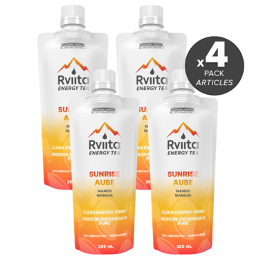- 4x Rviita Energy Tea Clean Energy Drink Sunrise Mango, 355mL