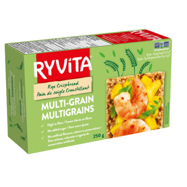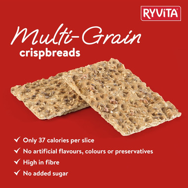 Healthy multi-grain snacking just got tastier. Ryvita Multi-grain Crispbread brings together toasted seeds and grains with a scrumptious crunch like no other. These light and crispy multi-grain snackbread tastes great on its own or paired with your favourite savoury and sweet toppings.