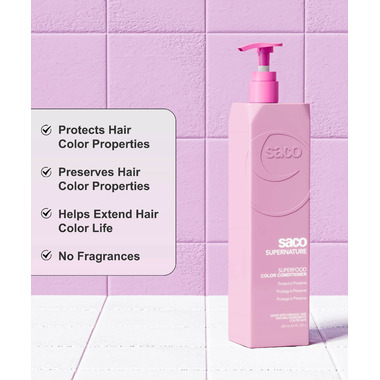 Directions: Apply to wet hair, lather small amount in the palms and massage into hair and scalp, leave the lather for two minutes then rinse thoroughly. For optimal benefits use the Saco Color Shampoo prior.