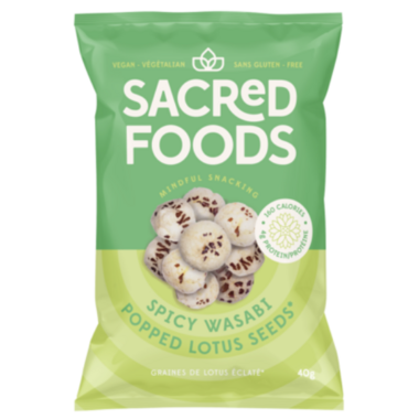 Sacred Foods Wasabi Popped Lotus Seeds. Mindful Snacking. Only 160 calories and 4g of protein!