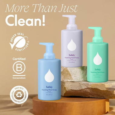 Wet hands, add a pump of Safely Hand Soap to hands, lather for 20 seconds, and rinse.