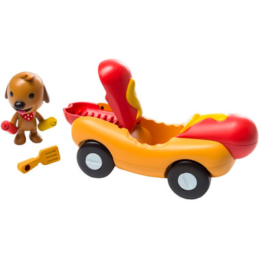 Hot Dog! Here comes Harvey! Harvey’s cruising around in his Veggie Dog Car. With delicious condiments and a handy hidden grill in the back, this pup is always ready for a backyard barbeque! Trunk pops open to reveal a surprise grill! Sago Mini's vehicles encourages imaginative play.