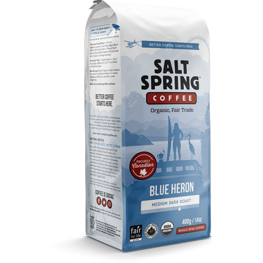 Blue Heron by Salt Spring Coffee is a medium dark roast whole bean coffee that's blended for a rich, full body. Better coffee starts here.