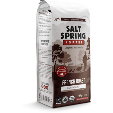 Salt Spring Coffee French Roast is a dark roast whole bean