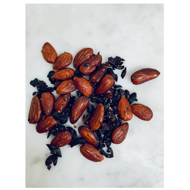 This mix is crunchy, piquant and olive forward. Briny dried black olives and perfectly seasoned Valencia almonds make a sophisticated match for your favourite drink from a Negroni to a vintage red, taking your cocktail hour to the next level.