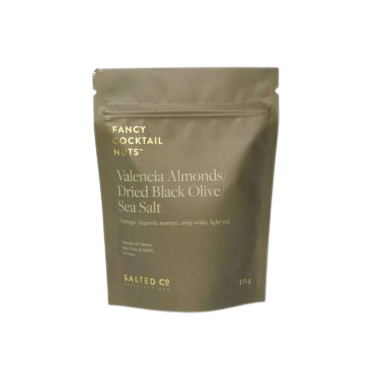 Salted Co. Fancy Cocktail Nuts Valencia Almonds, Black Olive, Sea Salt