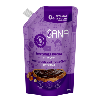 SANA Hazelnut spread with cocoa has no added sugar, is gluten free, keto friendly and palm oil free.