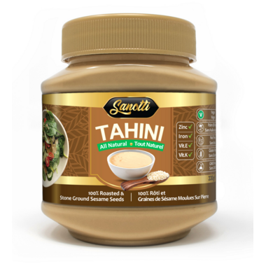 All natural tahini with 100% roasted and stone ground sesame seeds.