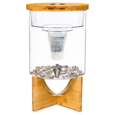 Included: Glass Reservoir, 1 pkg of Mineral stones, 1 MINA Filter, Bamboo Stand and Lid, BPA/BPS-free Upper Tank