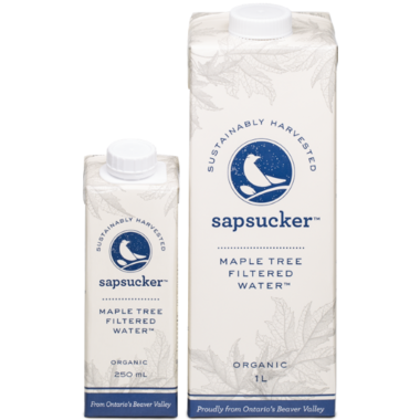 Sapsucker isn't like any water you've had before. We harvest it from maple trees using traditional methods that keep our forests strong and healthy. These magnificent giants are natural filters, yielding a pure, balanced water with a hint of sweetness that lifts your spirits as it replenishes your body. Serve Sapsucker as you water, with meals or as a refreshment on its own.