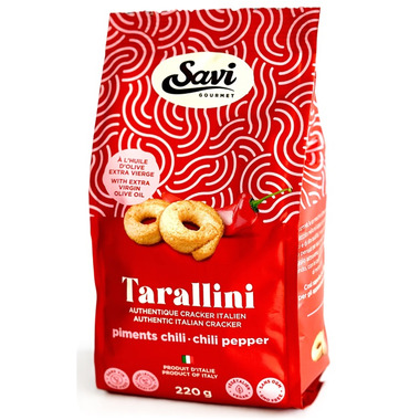 Savi Gourmet Tarallini Chili Pepper are authentic Italian crackers with extra virgin olive oil and chili pepper.