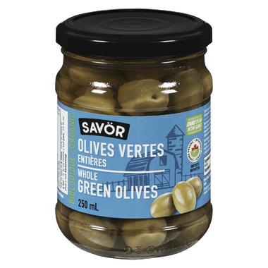 Savor's Halkidiki organic green olives are grown exclusively in Greece. These firm and meaty olives are full of natural flavours with hints of peppery spicy and tartness taste. Serve them as a snack, appetizer, in salads or in pizzas.