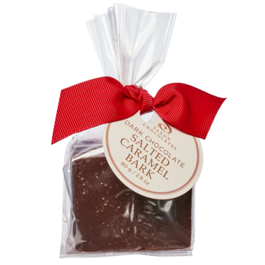 Dark Chocolate bark with sprinkles of salt on top finished off with a chewy caramel inside.