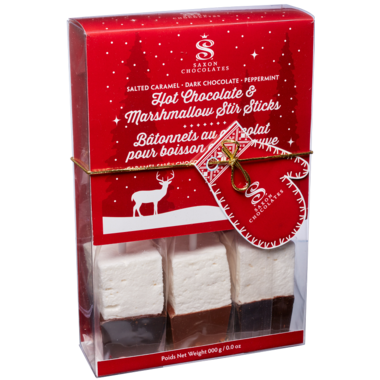 Whether a treat for yourself or a treat for others, it's easy to indulge in Saxon Chocolates Hot Chocolate & Marshmallow Stir Sticks.