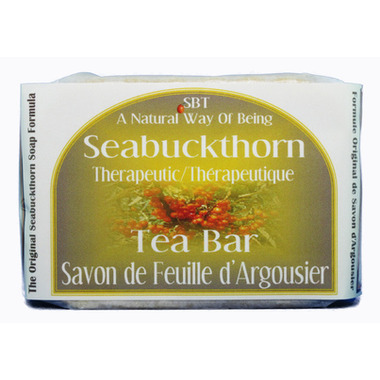 SBT Seabuckthorn Tea Bar is a deep cleansing yet gentle handcrafted facial cleansing bar suited for those with acne, oily, combination, & blemish prone skin. Seabuckthorn leaf extract & oils reduce redness, balances sebum, banishes blemishes, reduces inflammation, and stops the painful itching often associated with acne and breakouts. This cleansing bar is packed with nourishing plant omegas & antioxidants as well as vitamin e that helps to reduce scarring & red marks. Seabuckthorn leaf extract adds quercetin, calcium, protein, magnesium, potassium, and salicylic acid are all well-known nutrients that effectively reduce inflammation and treat acne while nourishing your skin as you cleanse. Suitable for combination & oily skin, blemish prone skin, and acne.