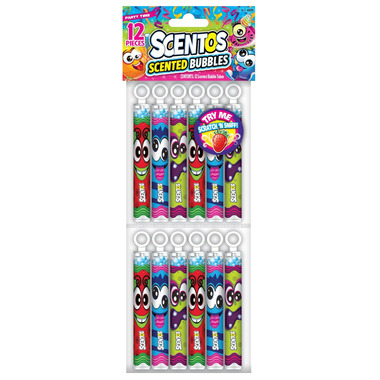 Scentos scented bubbles come in a variety of scents including strawberry, green apple and lemon. Perfect for any party gift bags.