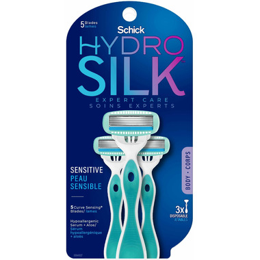 Their Hydro Silk 5 Sensitive Disposable Razor is dermatologist tested and has 5 Curve-Sensing blades with skin-protection coating and unique skin guards. They provide ultimate closeness and follow the natural contours of your body, giving you control over your shave.