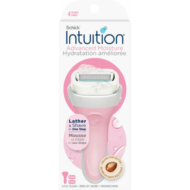The Schick Intuition Advanced Moisture razor with moisturizes and softens skin. Its the first and only razor system that lathers, shaves and moisturizes during shaving - in one easy step - so there's no need to use shave gel.