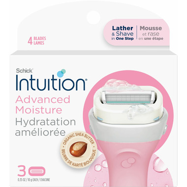 I loved the Schick Intuition Revitalizing Moisture Razor. I have a risen mole under my arm and when I shaved with this razor I didn't have to be careful as to not cut it off. I also have a number of scratches on my legs and I did not have a bloody mess while or after I shaved. Plus I had a very smooth shave, no stubble. I also found that one quick pass with the razor did the job it was intended to do. I like that it is bigger then most razors because I have wrist problems making it hard to feel a small razor in my hand. The Schick was not always slipping out of my hand and on the shower floor. My only complaint was that on the box it said razor with 4 blades and I only had 2 blades with mine. One on the razor and the other in the package.