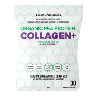 This unique drink mix powder is a protein blend of organic pea isolate and marine collagen, essential for tendons, ligaments and joints. It contains glucosamine, known to rebuild synovial fluid so joints don't rub, prevent damaging joints, and reduce inflammation. Also, Collagen+ has MSM, an excellent antioxidant that increases natural collagen production, as well as turmeric and ginger, the best foods for inflammation reduction. All ingredients work together to provide optimal joint and pain management health.