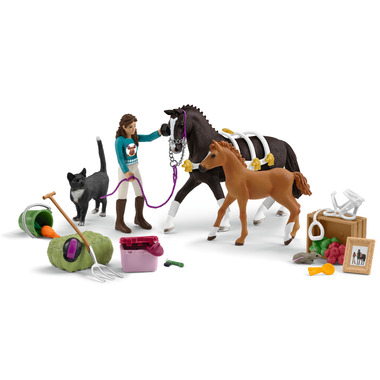 The Advent Calendar from HORSE CLUB offers 24 great surprises for real horse fans! Whoever opens all the little doors, gets to put the white crampons on the mare and help her into the bridle. Together with Sofia we head to our training session. The foal watches and sniffs everything with interest. For a moment, it even forgets the crunchy carrot that's waiting in the bucket.