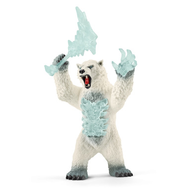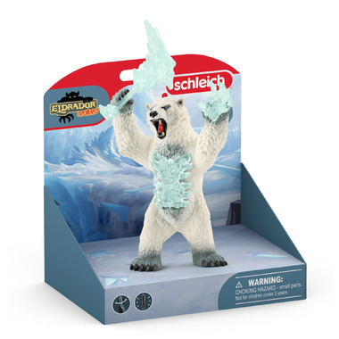 The blizzard bear by schleich ELDRADOR CREATURES freezes his opponents in fear: Anyone who ends up in his movable arms comes into contact with his ice-claw. The polar bear's favourite weapon is a magic ice pick: It can be used to trigger a violent storm of ice particles that sweeps enemies away. The bear is also well protected by his robust breastplate made of ice.