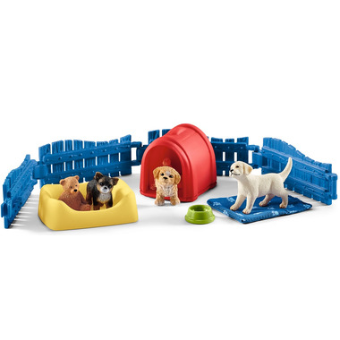A Maltipoo, a Chihuahua and a Labrador Retriever play together in the puppy pen. What a wild time the three of them are having! They romp around on the cuddly blanket, compete for the teddy bear and play hide-and-seek. In between, they take a well-deserved nap in the dog basket.