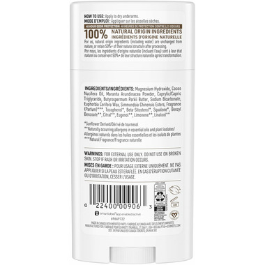 This women's and men’s deodorants are enriched with magnesium to help neutralize odour and keep you fresh with 48-hour odour protection that is gentle on skin. Schmidt's offers some of the best smelling deodorants for men and women and is made with plant-based oils and butters such as coconut oil, jojoba seed oil, and shea moisture butter, as well as vitamin E. Luxurious, long-lasting scents made with 100% natural origin fragrance are never synthetic, always made with plant isolates and essential oils like tea tree oil, jasmine oil, and lavender oil. All our Schmidt's vegan deodorant sticks require only a small amount for overall effectiveness.