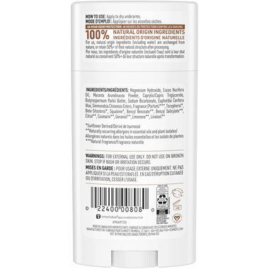 Magnesium Hydroxide, Cocos Nucifera (Coconut) Oil, Maranta Arundinacea (Arrowroot) Powder, Caprylic/Capric Triglyceride (Fractionated Coconut Oil / Huile de Coco Fractionne), Butyrospermum Parkii (Shea) Butter, Sodium Bicarbonate (Baking Soda / Bicarbonate de Soude), Euphorbia Cerifera (Candelilla) Wax, Simmondsia Chinensis (Jojoba) Esters, Parfum (Natural Fragrance / Fragrance Naturelle), Tocopherol (Vitamin E, Sunflower Derived / Driv驩 de Tournesol), Beta-Sitosterol, Squalene, Charcoal Powder