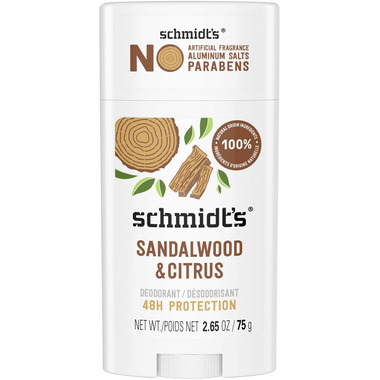 - 100% Natural Origin. Really Works - Schmidt's Citrus and Sandalwood natural origin deodorant helps neutralize odour and keeps you fresh with 48 hour odour protection