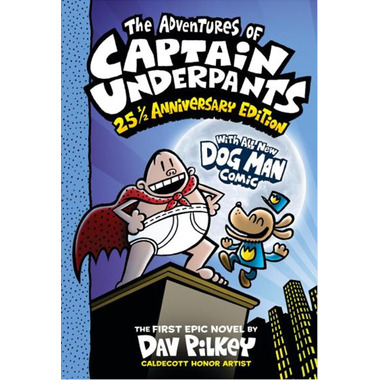 George and Harold are best friends who enjoy making their own comic books. Together they've created the greatest superhero in the history of their elementary school: Captain Underpants! His true identity is SO secret, even HE doesn't know who he is! Tra-la-laaaaa! It's can't-miss fun! After the Captain Underpants adventure, join George and Harold as they share their never-before-seen bonus comics: Captain Underpants Meets Dog Man and Dog Man and the League of Misfits. Celebrate the 25th and a half anniversary of THE ADVENTURES OF CAPTAIN UNDERPANTS with a special edition featuring a BRAND NEW 32-page DOG MAN comic!