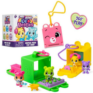 Experience an exciting sharing and caring adventure with the Care Bears Lil' Besties Surprise Cubbies! Your favourite, lovable Care Bears BFF's are now in MINI and come with their very own miniature world to play in! Each surprise cubby comes with 2 figures and lots of fun, colourful accessories. Fold down the sides of the cubby to reveal two hidden mini rooms inside! And when you're on-the-go, just fold back up the cubby and you're ready for travel. Collect them all to expand your miniature world!