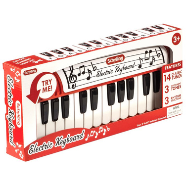 Inspire the young musician in your life with the Electric Keyboard from Schilling Toys! This 24 key electronic keyboard features 14 demo songs, plus piano, trumpet, and organ sounds.