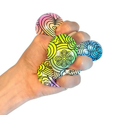 Rated 4 out of 5 by from Great feeling squish, with 1 flaw Honestly this is such a cool looking stress ball & it feels amazing. Reminds me of the feeling of the color changing needohs. Also the reason that the colors do not mix, is that the filing is not colored but instead and 2nd layer of material is under the patterned outer layer. But the print is on the outside surface & starts rubbing off pretty quickly. At this point I need to either quit using it so I can enjoy the look, or be okay with the pattern smearing more & more. I think if they were to do this same design but under a clear layer of outer material, like the swirl eggs are, that this would be a 5 star item for sure.