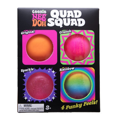 Meet the Teenie NeeDoh Quad Squad — a pack of four tiny but mighty squishy globs! Each Teenie NeeDoh offers classic doh-filled squish satisfaction in a teenie size.