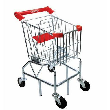 The Little Shopper Shopping Cart from Schylling Toys is perfect for children aged 3 and up. Designed with a sturdy metal frame and an easy-grip handle, it ensures durability and ease of use. Its built-in spring-loaded casters provide smooth 360-degree pivoting wheels for effortless maneuvering. The cart also features a fold-out seat to carry a favourite doll or plush toy, and plastic bumpers on the corners add an extra layer of safety during playtime.