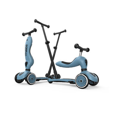 Highwaykick 1 Push and Go. The 2 in 1 Ride On and Scooter With Parent Push Bar for Effortless Early Adventures. The Highwaykick 1 Push and Go is designed to support children from their very first steps to their first confident rides, now with the added convenience of a height adjustable parent push bar. Suitable from 1 to 5 years, it transforms from a ride on to a three wheeled scooter in seconds, without tools, making it the ideal long term companion for growing toddlers.
