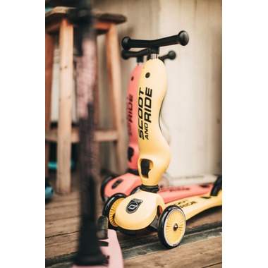 The Highwaykick 1 is the ideal companion for children aged one to five. It is a 2-in-1 one kickboard with seat. No tools needed for adjusting the seat height or converting it into scooter mode. It grows easily together with your little one. Because of its stability, this product gives the little ones the opportunity to move safely and comfortably inside and outside. The pattented safety pad in the front offers extra security and prevents tipping over.